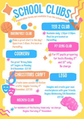 School opens at 7.45am for our Breakfast Club. We offer a range of sports, crafts and games to children from P1 to P7. Laughter can be heard echoing through the corridors early in the morning as pupils and staff get ready to start the day.